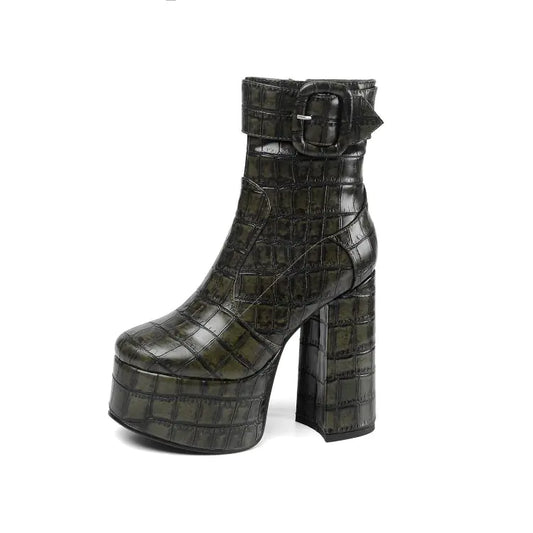 Chunky Heel Ankle Boots with Side Zipper for Women