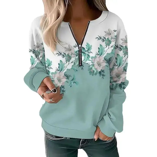 Casual Printed Women's Zipper Pullover Sweatshirt