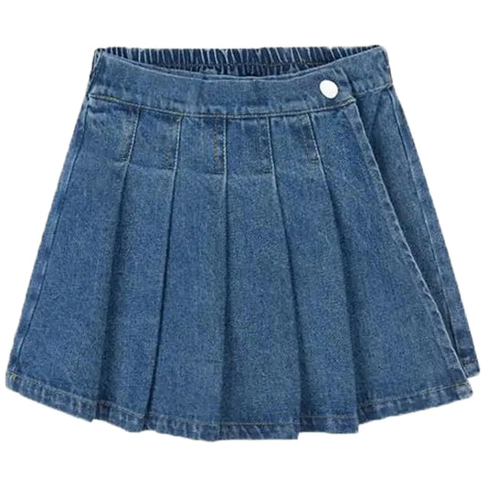 TIBE PINCESS Girls Denim Skirt Summer Vintage Pleated Kids Skirt Shorts Children Uniform Skirt Jeans Skorts 5-6Years Blue