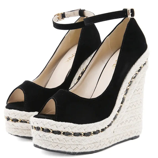 Wedge Suede High-Heel Fish Mouth Sandals (European Style)