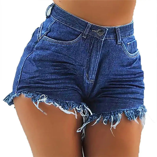 Mid-Waist Ripped Fringed Denim Shorts for Women