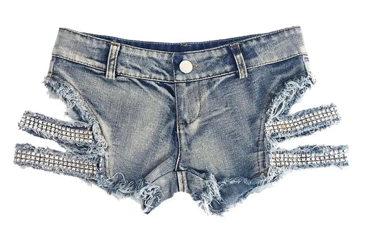 Low Waist Women’s Denim Mini Shorts with Rivets